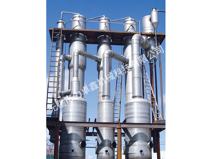 產品概述:多效蒸發(fā)器由各效加熱蒸發(fā)器、各效分離器、冷凝器、熱壓泵、殺菌器、保溫管、真空系統、各效料液輸送泵、冷凝排水泵、操作平臺、電器儀表控制柜及閥門、管路等系統組成。