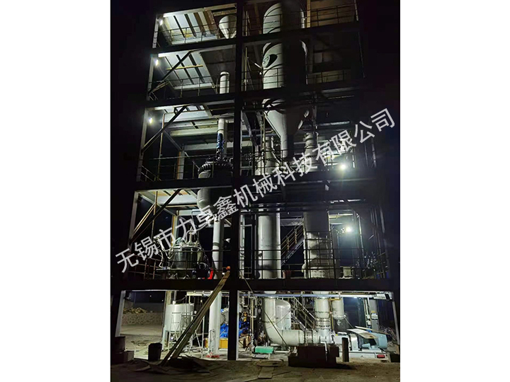 工作原理:四效降膜蒸發(fā)器需濃縮的料液由泵送入加熱管頂部,沿著加熱管內壁形成液膜向下流動。在這個過程中,由于管外的加熱,管內液膜開始沸騰并部分蒸發(fā)